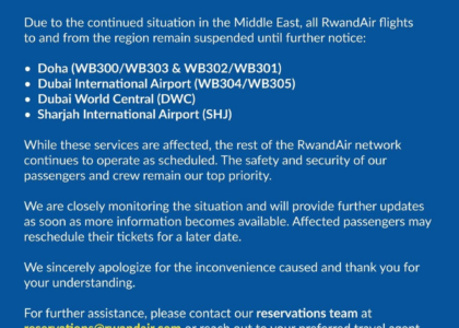 RwandAir Suspends Middle East Flights – Important Travel Update for Passengers